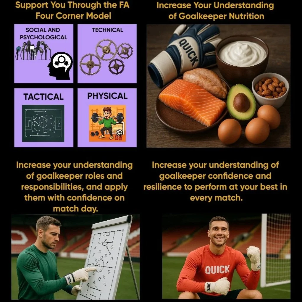 I have coached in the UK and abroad, including with academy goalkeepers, schools, and elite teams in Qatar, before returning home to merge proven learning theory with goalkeeper development. I founded Quick Goalkeeping to provide keepers with coaching that truly meets their needs.